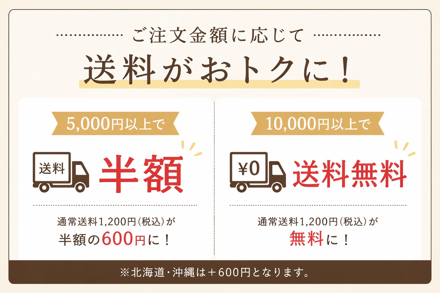 送料を見直し、よりご注文いただきやすくなりました。